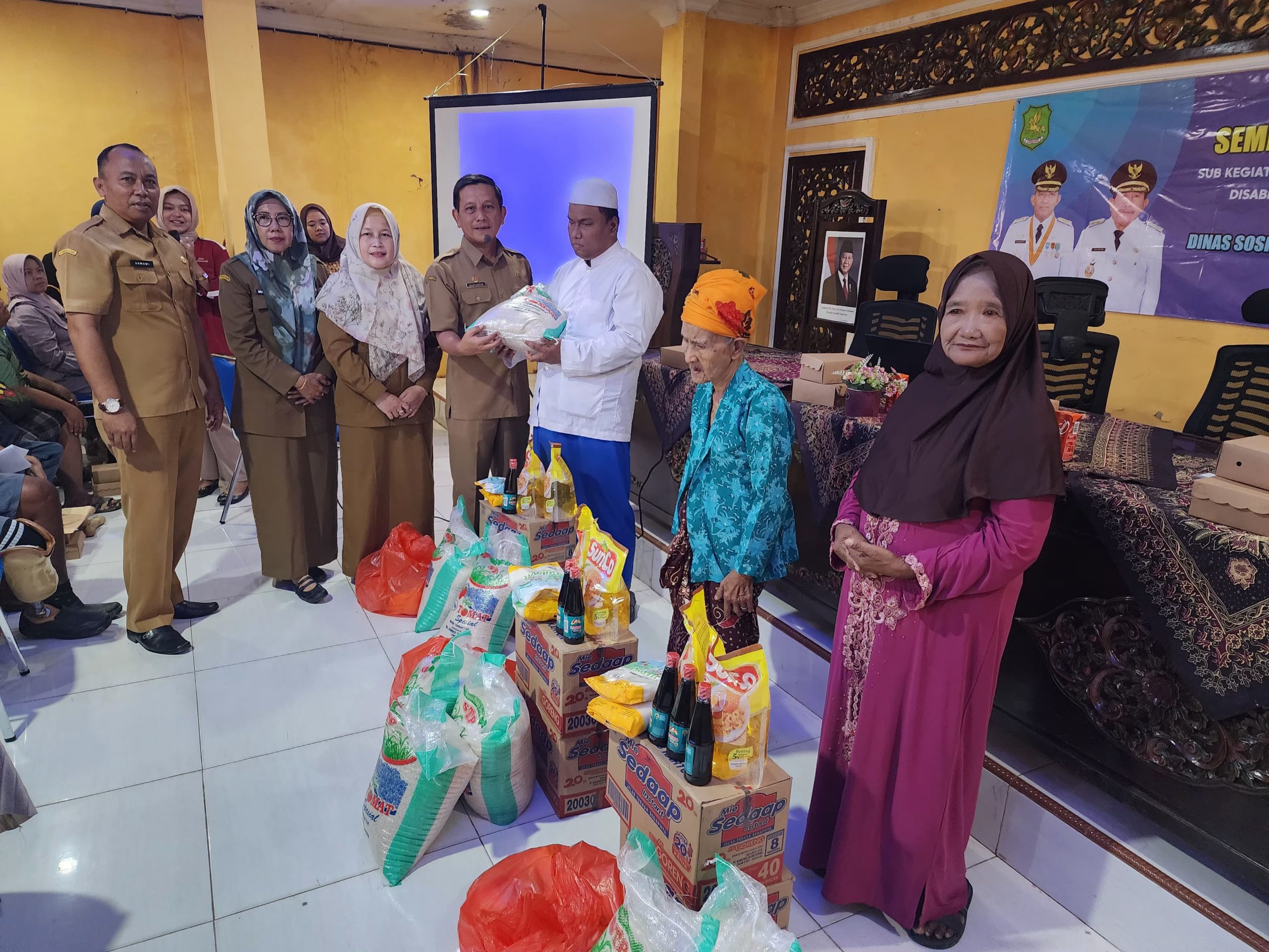 SUMENEP, diluartv.id- Dinas Sosial Pemberdayaan Perempuan dan Perlindungan Anak (P3A) Sumenep menyerahkan paket bantuan untuk lansia dan penyandang disabilitas. Penyerahan bantuan dilaksanakan di aula kantor Dinsos P3A Sumenep, Selasa lalu (28/10/2025) dan dihadiri Kadinsos P3A Sumenep Mustangin dan Kabid Resos Tri Budi Astuti.